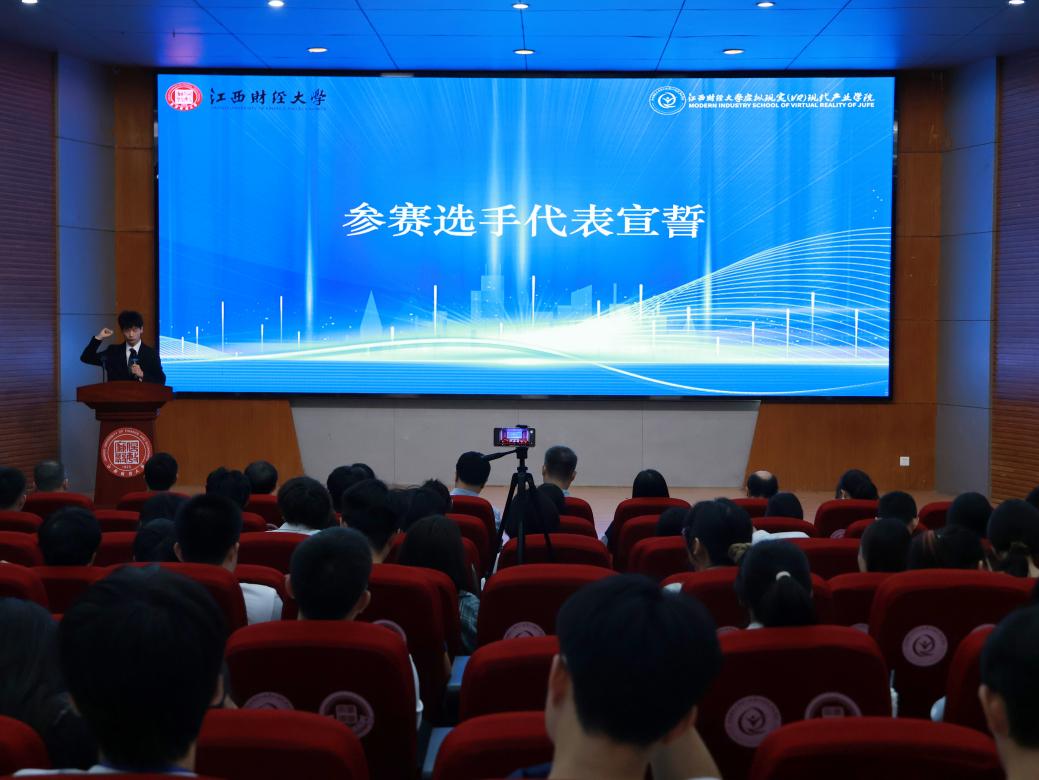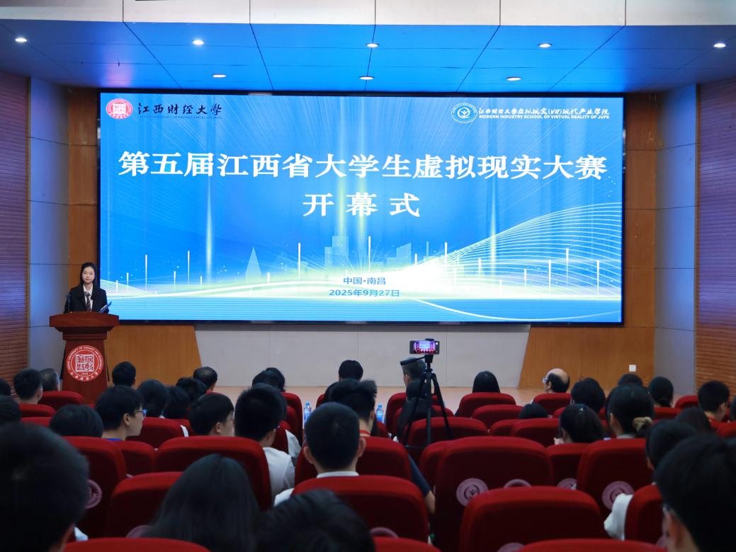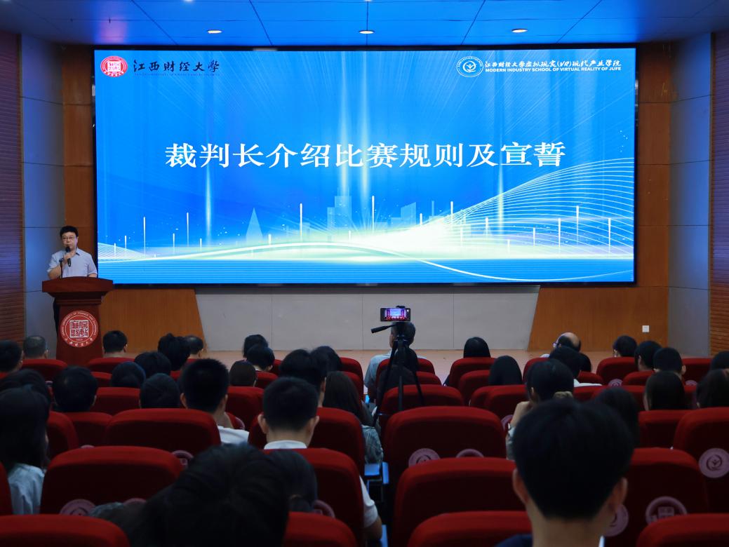 9月27日,第五届江西省大学生虚拟现实大赛在枫林校区隆重举行。此次赛事由中国计算机学会、中国图象图形学学会、中国仿真学会联合江西省虚拟现实教育联盟、江西省虚拟现实(VR)产业技术创新战略联盟共同主办,江西财经大学承办。开幕式上,江西财经大学虚拟现实(VR)现代产业学院副院长李华旸、党委副书记刘前、党委委员吴洁、创新创业学院院长梅小安、设计与艺术学院副院长况宇翔,以及江西中直新经济产业发展有限公司董事长汪翠芳、江西科技师范大学副教授陈美芳、江西师范大学副教授刘清华、华东交通大学副教授黄晓生等嘉宾悉数出席。开幕式由潘奕欣主持。